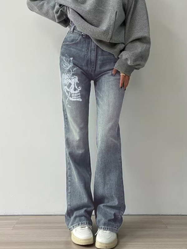 Skull Print Flare Jeans