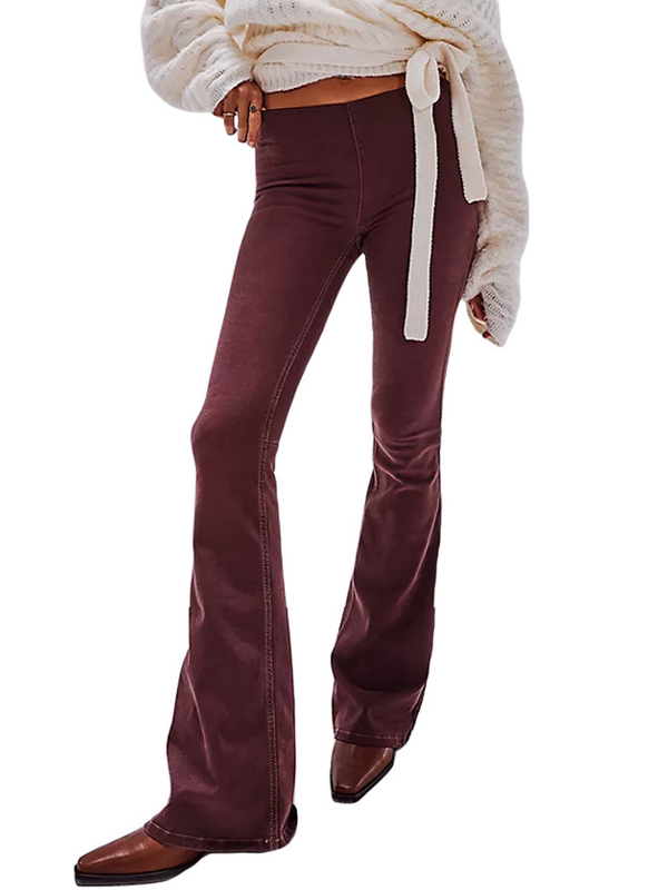 Brown Simple Mid Rise Straight Jeans