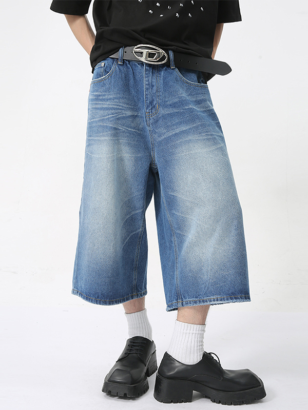 Men’S Retro Casual Straight Loose Wide Leg Shorts
