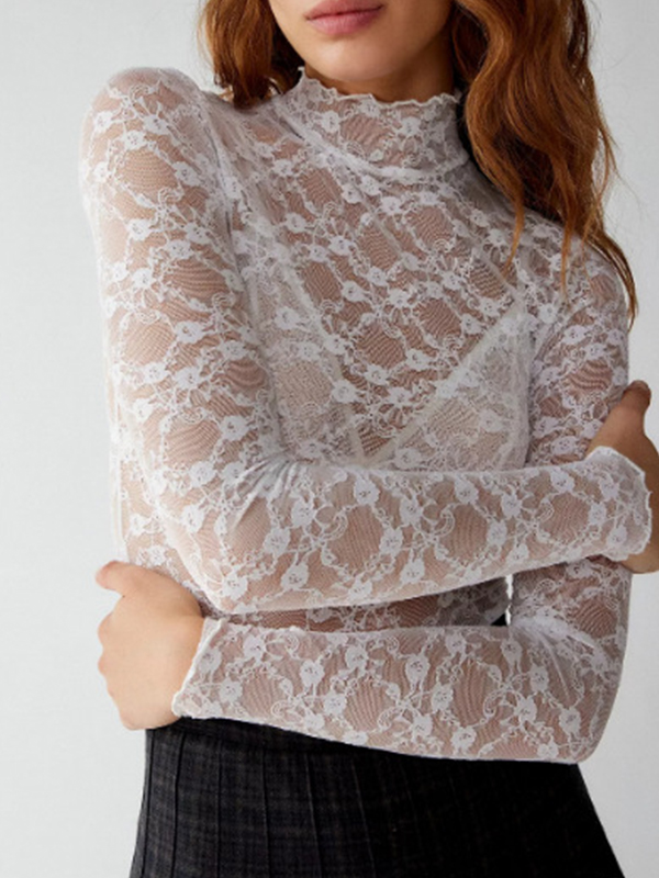 All Over Lace Mock Neck Long Sleeve Tee
