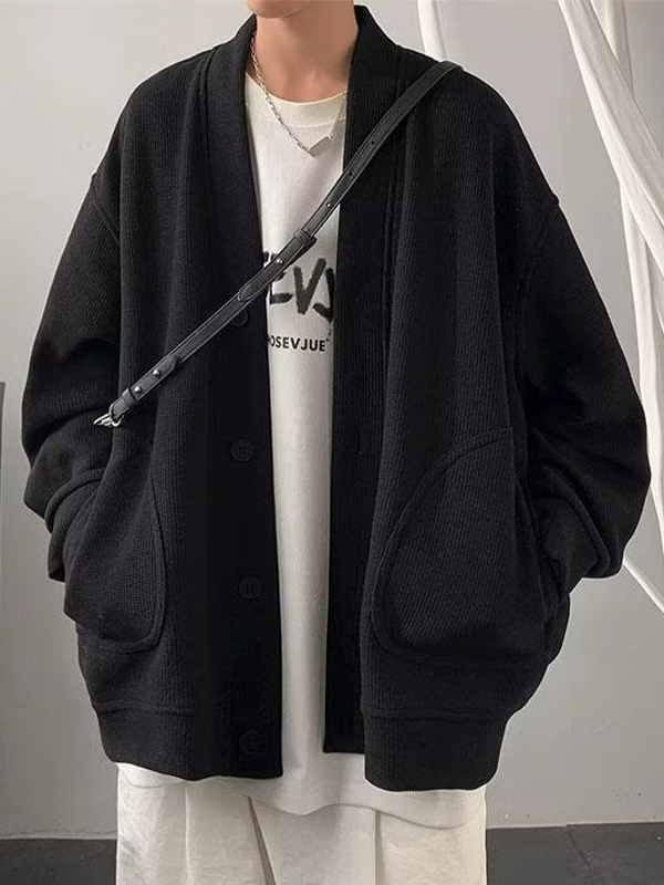 Men’s Solid Waffle V Neck Cardigan Jacket