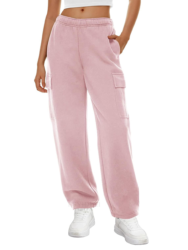 Solid Multi Pocket Elastic Waist Sweatpants