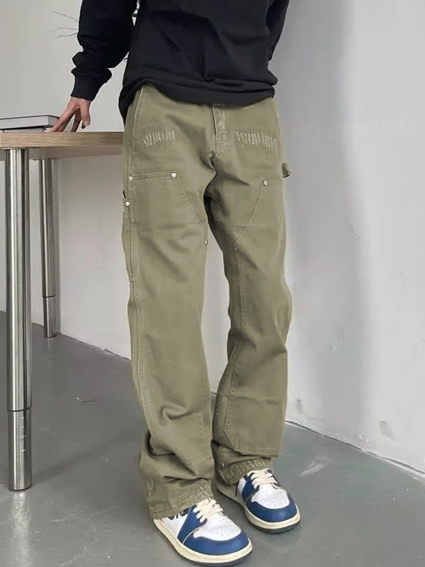 Retro Heavy Industry Washed Bamboo Stripes Loose Jeans