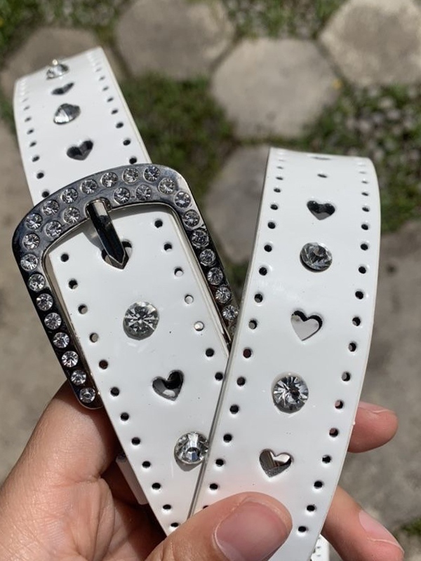 Y2K Heart Cutout Shiny Rhinestone Buckle Belt