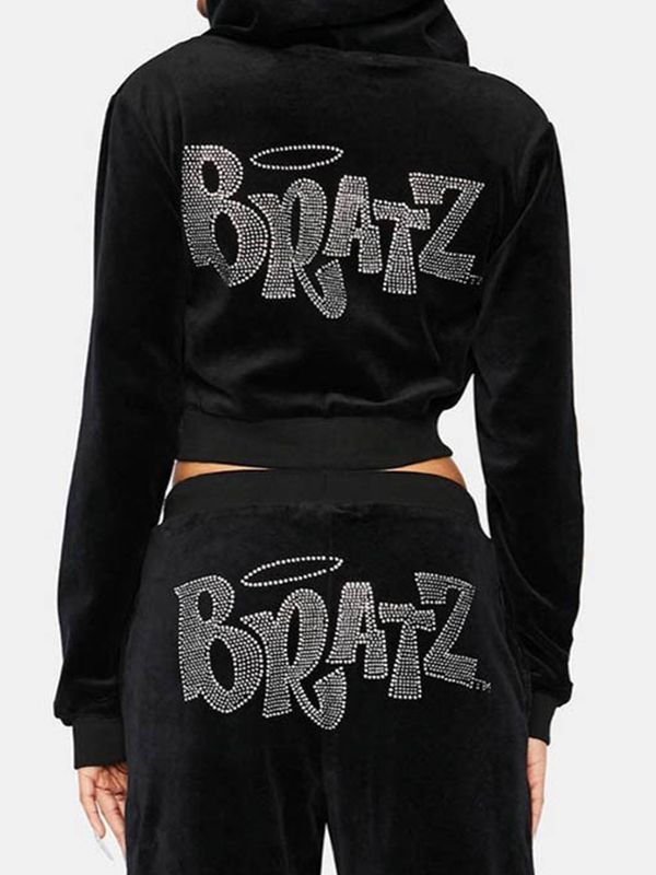 Letter Rhinestone Print Short Hoodie