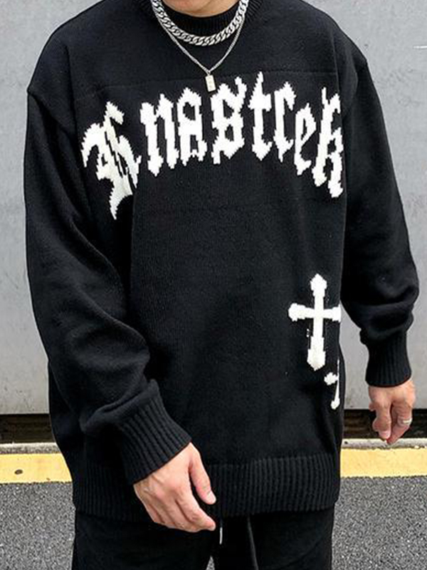 Men’s Vintage Cross Letter Print Oversized Sweater