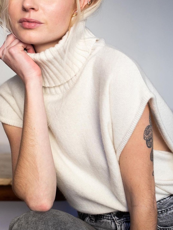 Solid High Neck Loose Sweater Vest