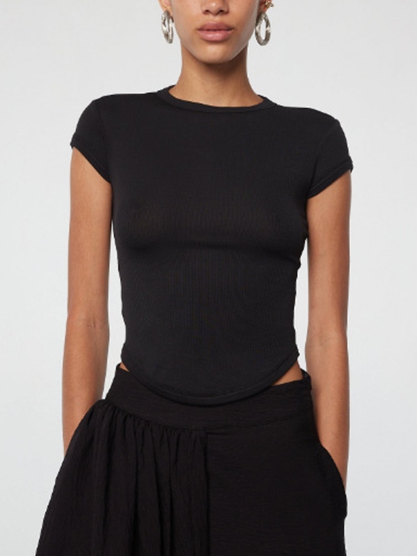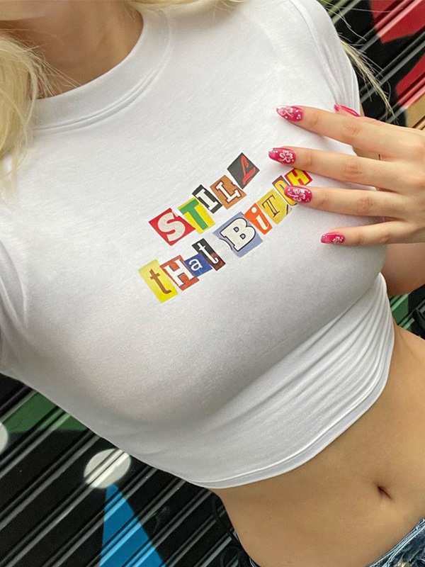 Dark Style Print Crew Neck Cropped Short Sleeve Tee