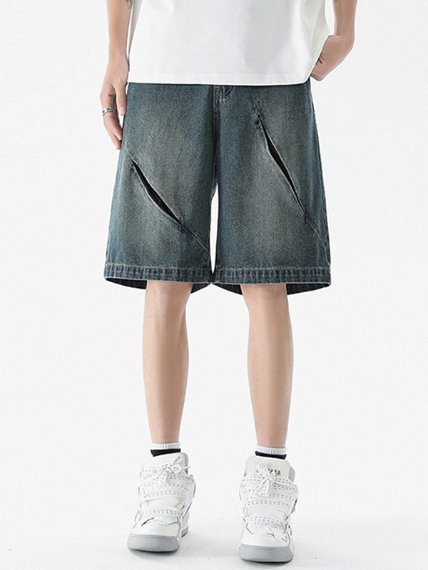 Men’S Washed Distressed Rhinestones Ripped Denim Shorts