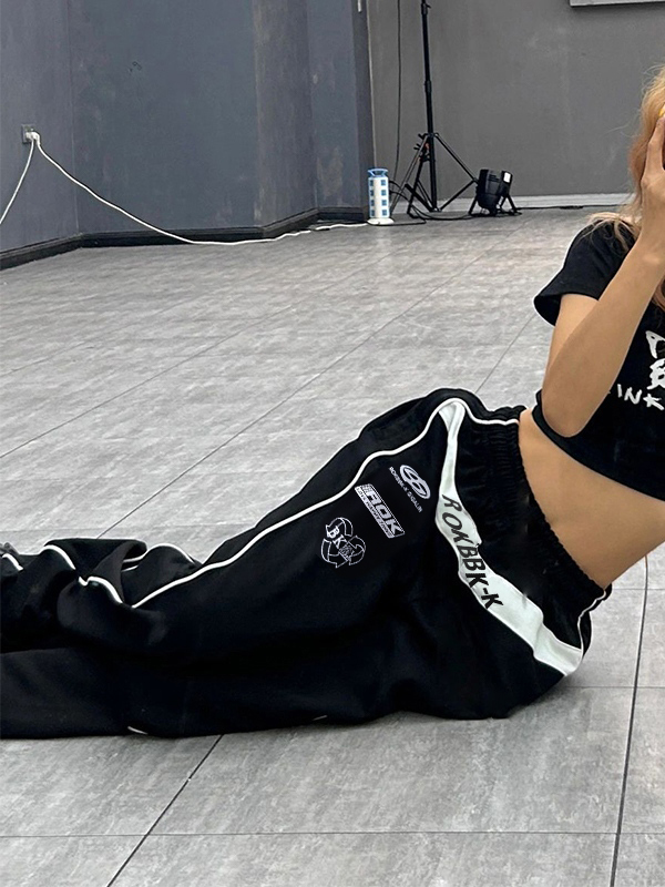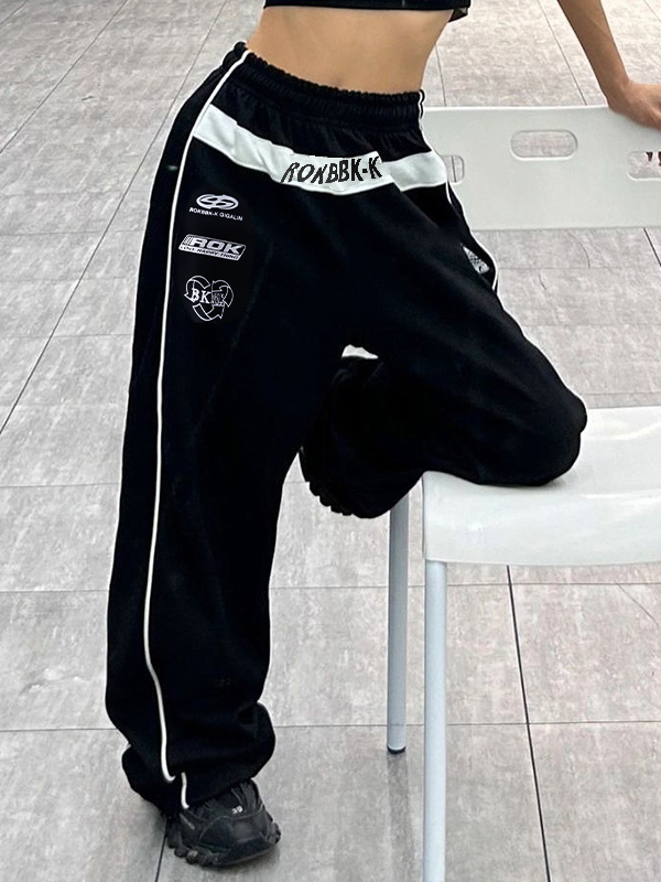 Trendy Design: The eye catching white line on the side of the pant adds a cool and hip pop vibe, while the unique badge print's embellishment gives a vintage and streetStyle look.