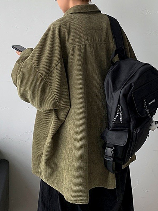 Description: These long sleeve shirts made from comfy corduroy fabric, features a large pocket at front chest, shaped to a relax silhouette, with drop shoulders and button front closure design.