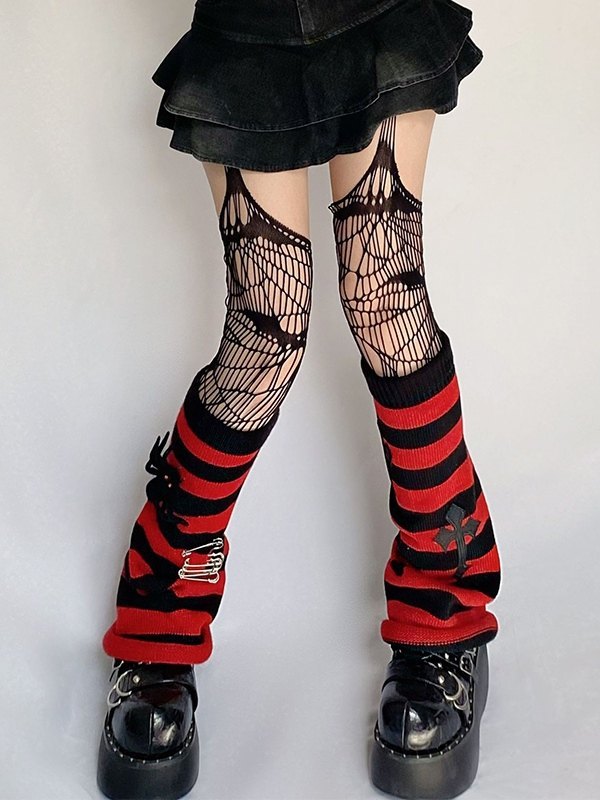 Detail: With elasticated cuffs, safety pin decors, spider embellished and cross patched design.