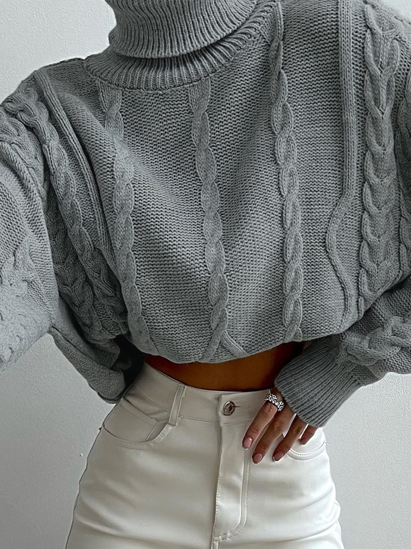 Be the first to review “Solid Cable Knit High Neck Sweater”