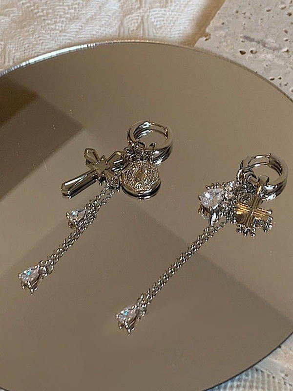 Cross Pendant Zircon Tassel Hoop Earrings