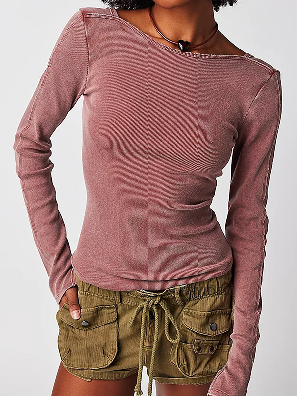 Solid Color Rib Backless Long Sleeve Knit