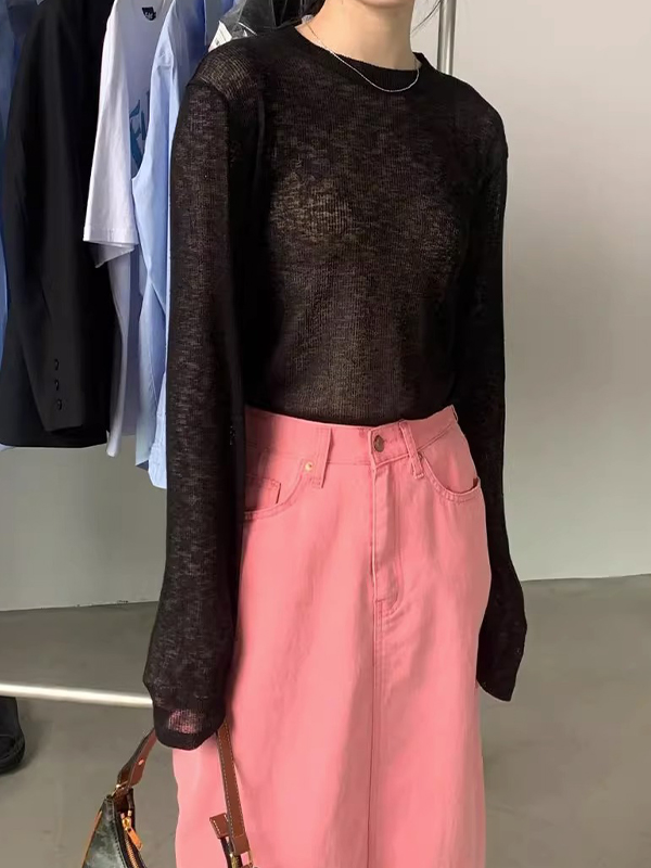 Plain Crewneck Casual Thin Long Sleeve Knits