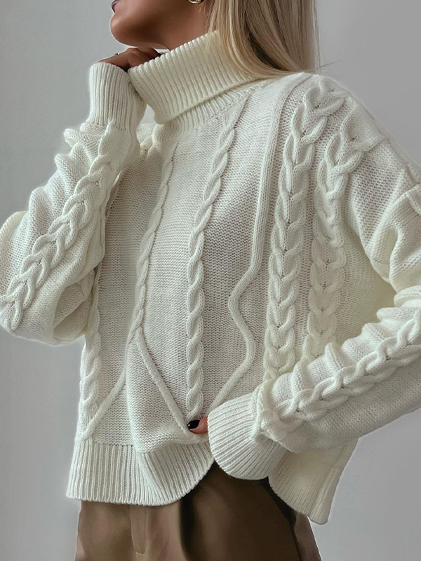 Solid Cable Knit High Neck Sweater