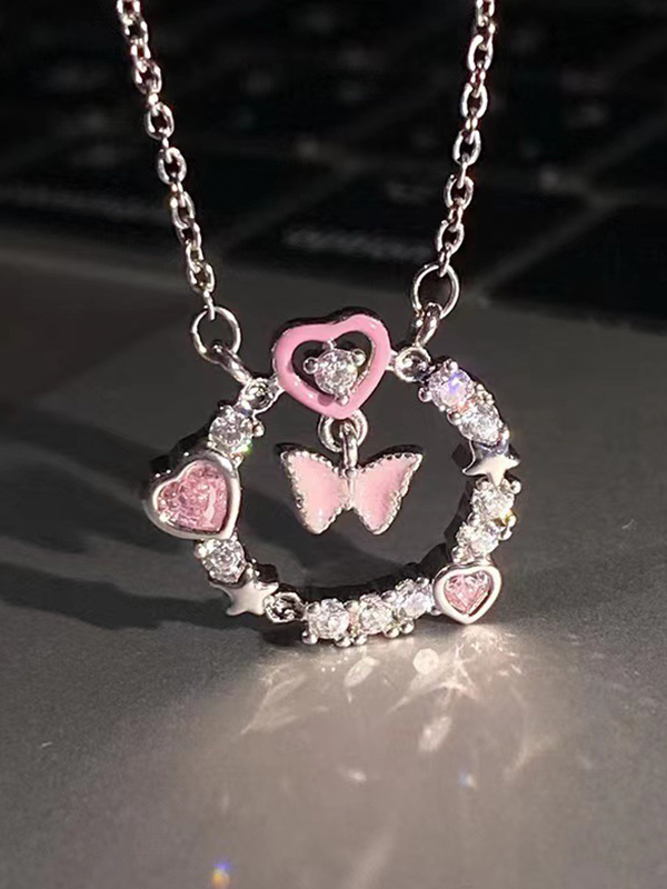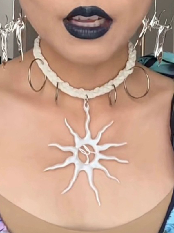 Cutout Sun Pendant Metal Ring Rope Necklace