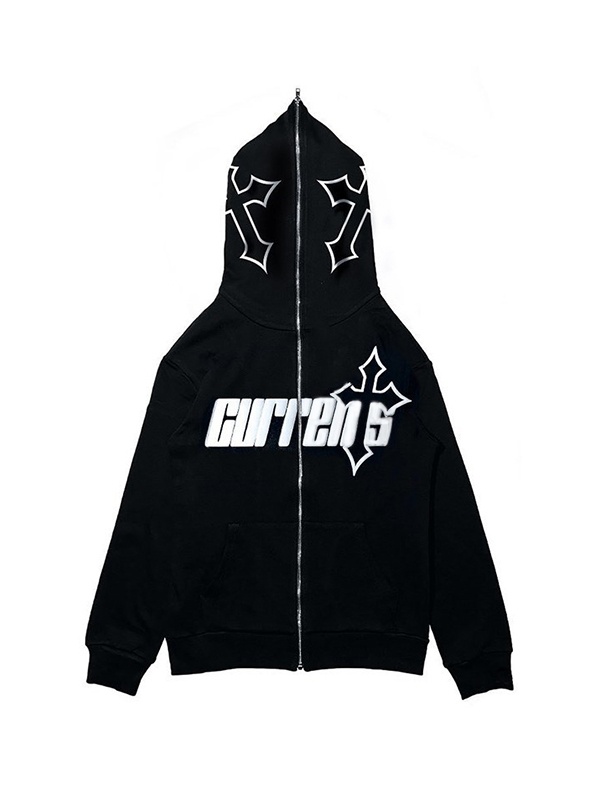 Men’s Sleeve Star Print Zip Up Oversized Hoodie