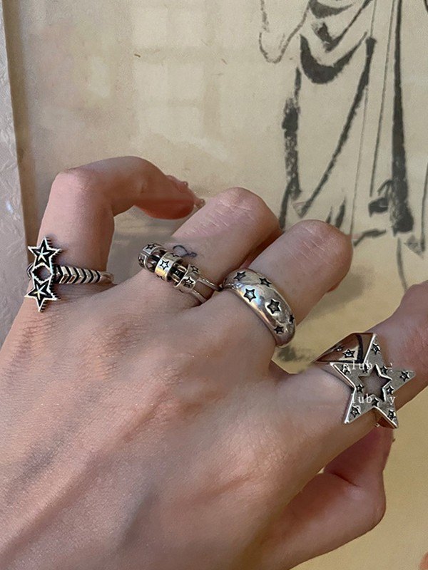 2Pcs Contrast Color Cat’s Eye Star Ring