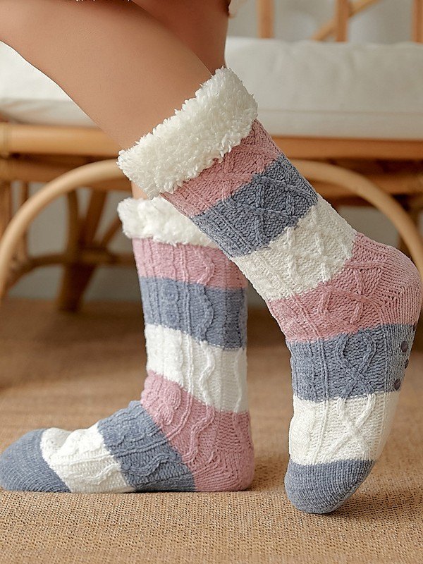 Color Block Striped Fleece Lined Home Socks