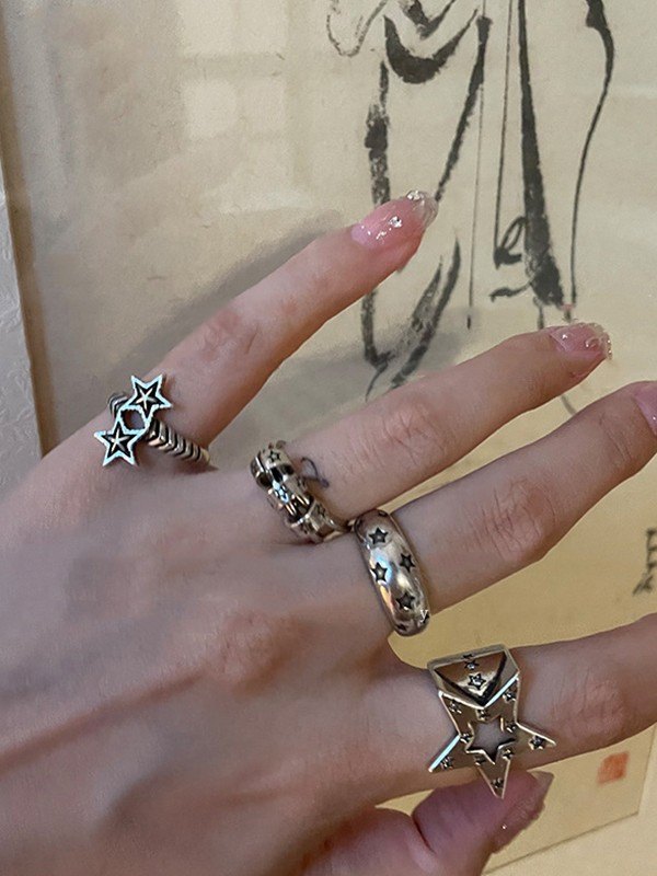 Vintage Star Pattern Cuff Ring
